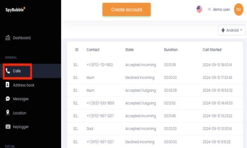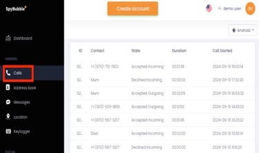 Use Spybubble's call history feature to view details of your children's calls without their knowledge. It allows you to see and get detailed information about every call made on your child's phone.