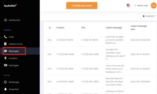 This feature allows you to read all messages exchanged from the targeted devices. It helps you see what your children are sending to their friends; if they are posting inappropriate messages, you can analyze them to further investigate. Therefore, the SMS tracking feature is an excellent choice for viewing anyone's conversations.